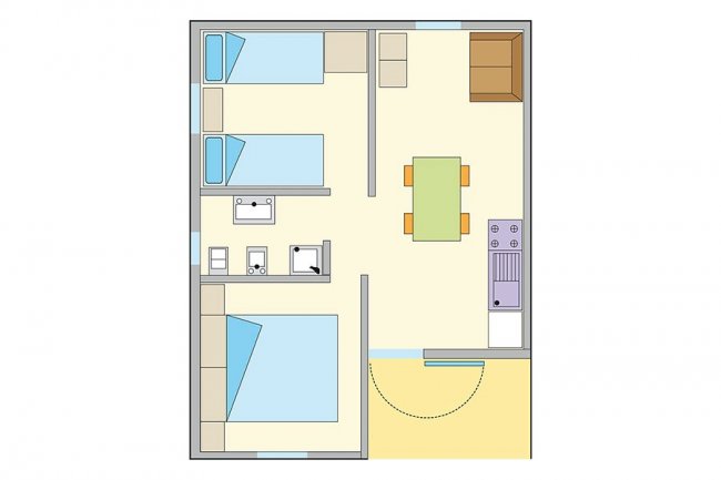 Bungalow indipendenti in muratura, con isolamento termico ed acustico. Possono ospitare fino a 6 persone e dispongono di area giorno con angolo cottura attrezzato, bagno con doccia, 1 o 2 camere da letto e veranda esterna attrezzata.