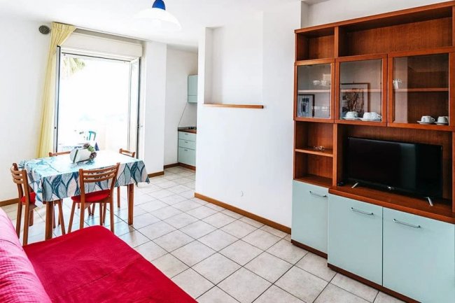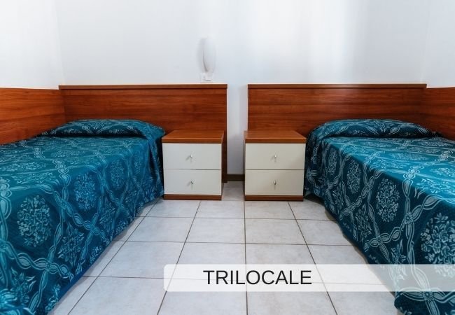 camera matrimoniale, camera doppia con letti singoli e a castello, divano letto, angolo cottura, box doccia, balcone arredato.
