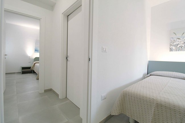 appartamento con aria condionata e tv, ampia area giorno con angolo cottura ben attrezzato, un divano letto doppio, camera da letto matrimoniale, cameretta composta da due letti singoli, bagno con box doccia, veranda antistante l’entrata dell’appartamento e di un balconcino/patio retrostante attrezzato. Arredati in modo semplice e funzionale.