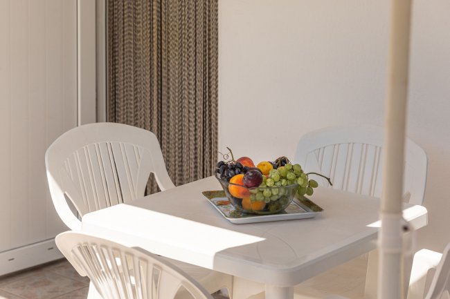 Tavolo da esterno con frutta.