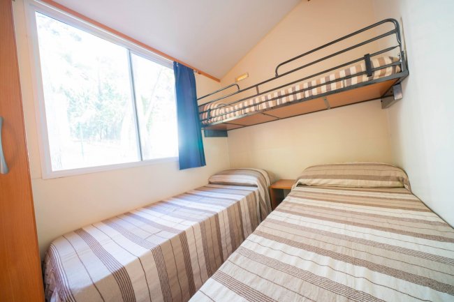 - Trilocali 5 posti: con area giorno, angolo cottura attrezzato e divano letto, camera con letto matrimoniale, camera con letto a castello, bagno con doccia e veranda esterna, aria condizionata non disponibile.